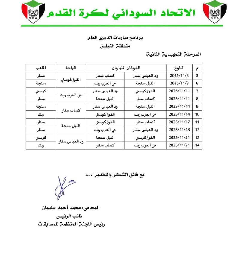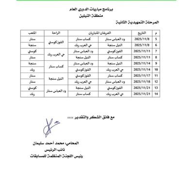 جدول مباريات فريق كرة القدم- الدورى التاهيلى المؤهل للدورى الممتاز للعام 2025
